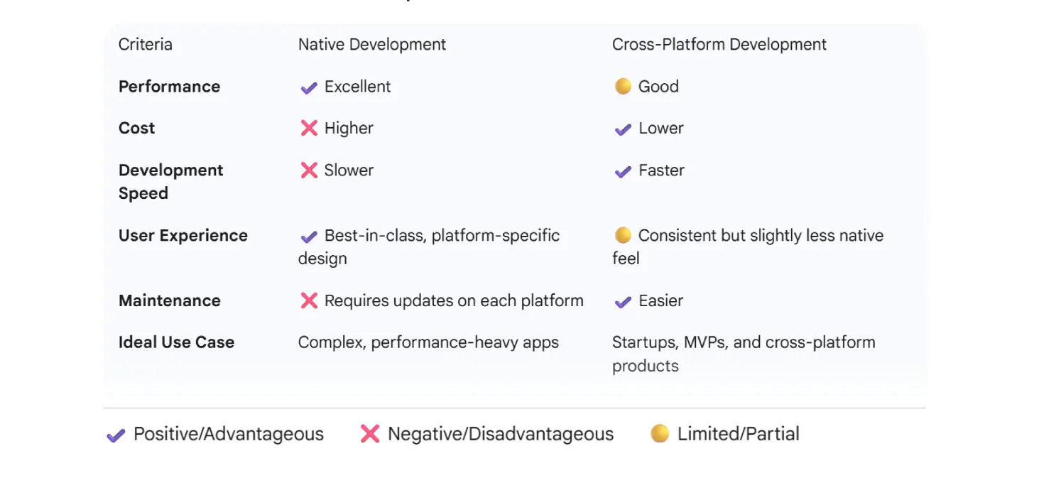 Comparison Table: Native vs Cross-Platform Development